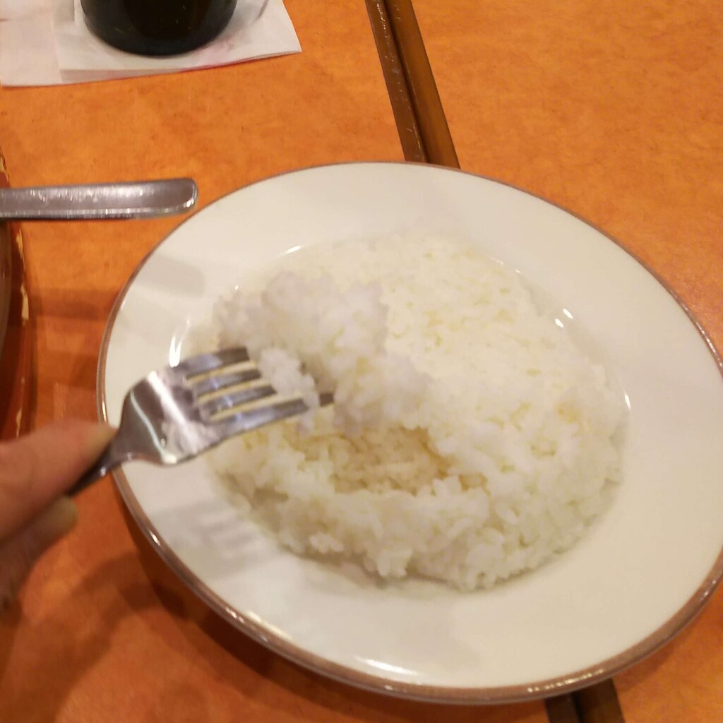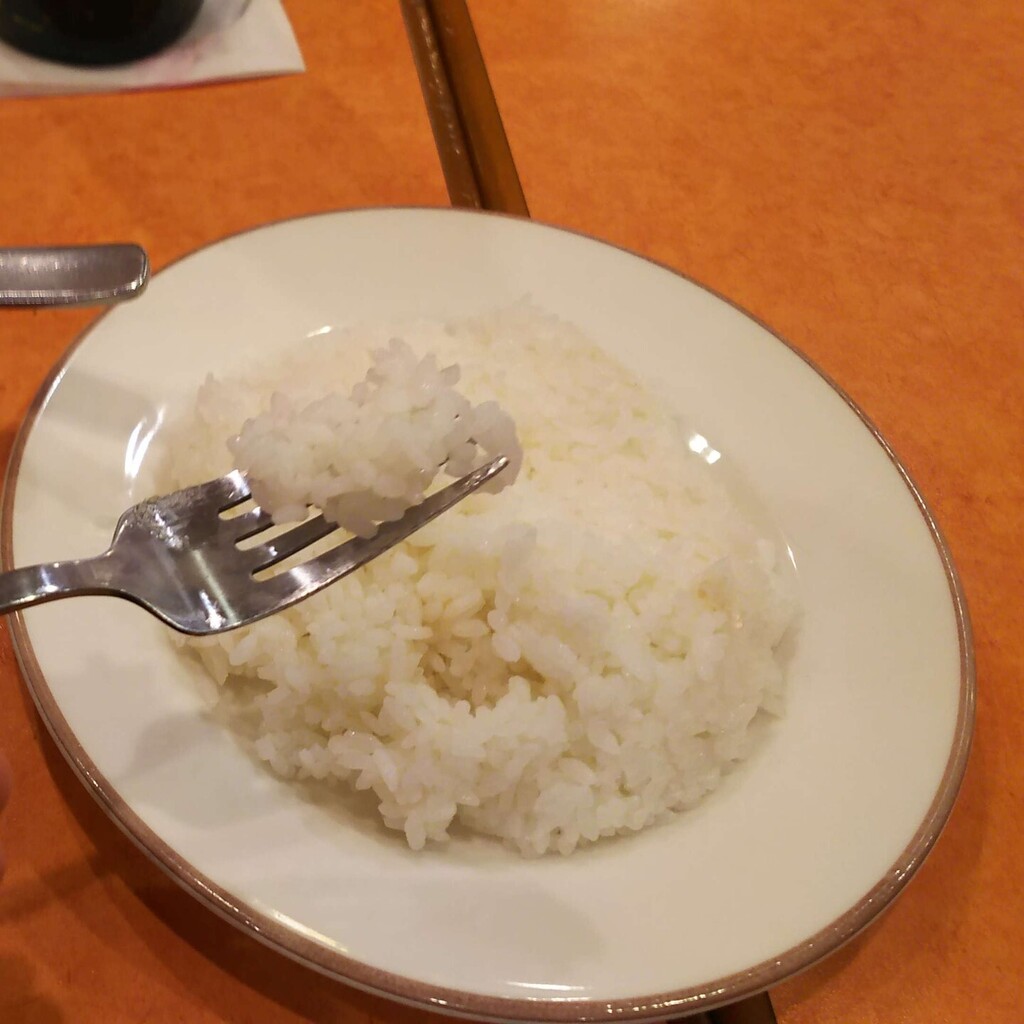 余談ですが、私が小学生の頃、もう 40年ぐらい前か…。ライスをフォークにのせて食べる時はフォークの背っていうんですか? 裏っかわというか、そちら側もナイフで寄せてという、取りにくいことをしていたのですが、