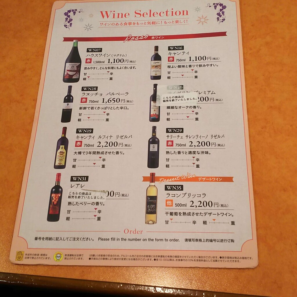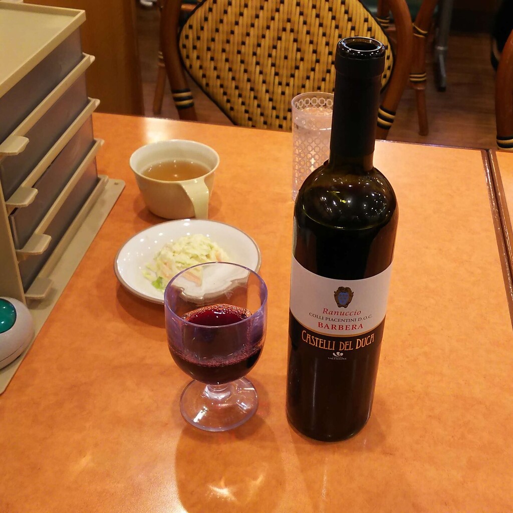 …というより、販売自体終了していたみたい。このお店は通常のグランドメニューのボトルワインだけでなく、他にも何種類かあるので、せかっくなのでそれを注文しました。ラヌッチョバルベーラっていうの? それを注文しました。私は赤ワインが好きなので…。